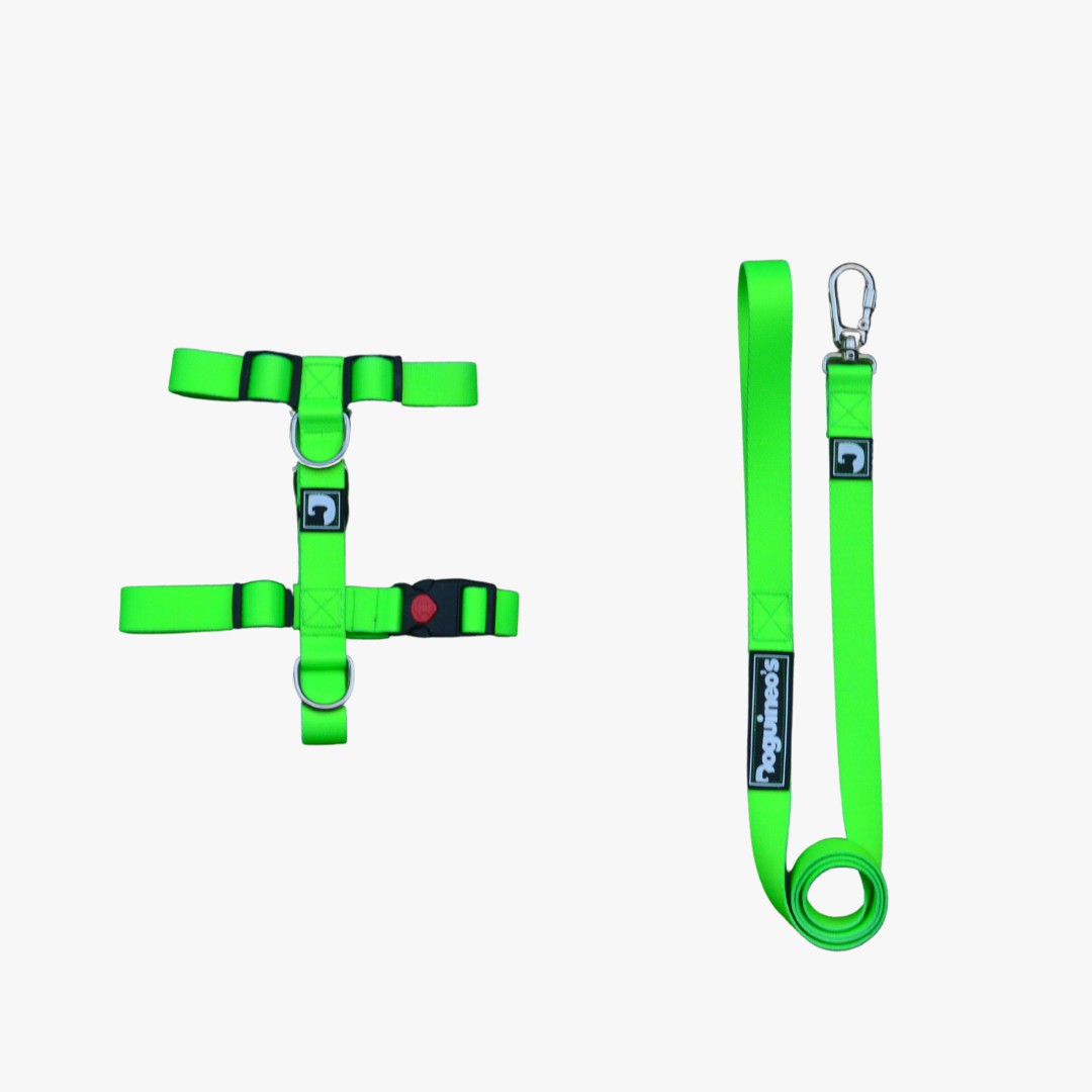 Kit Peitoral H Antipuxão + Guia para cães - Verde Neon