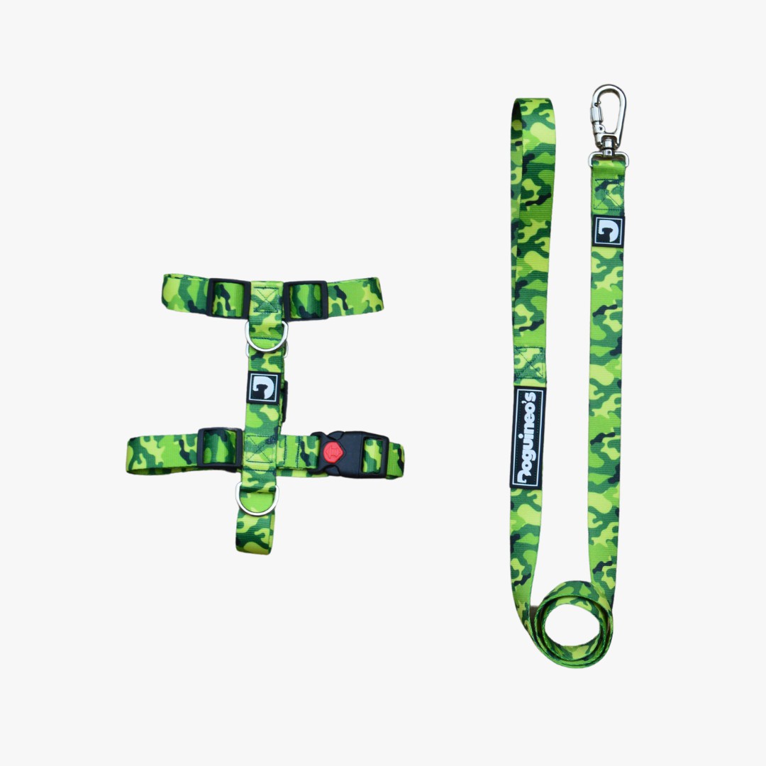 Kit Peitoral H + Guia para cães - Militar