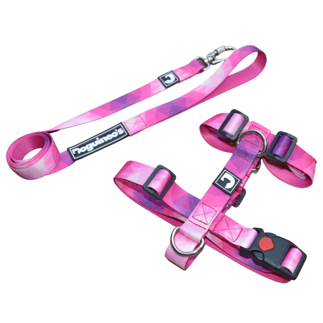 Kit Peitoral H antipuxão + Guia para cães - Rosa Degradê