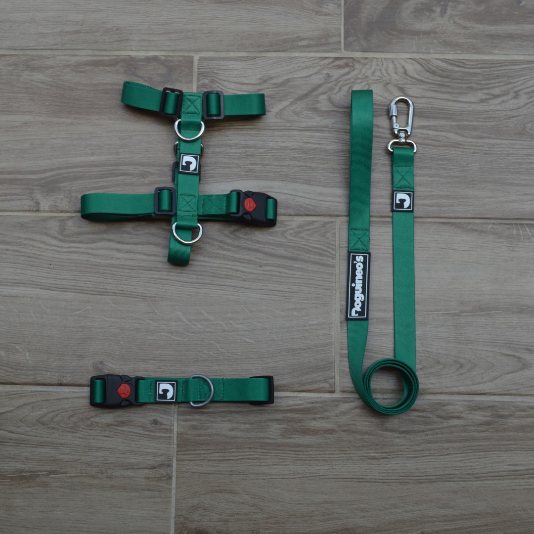 - Possui 3 engates para a guia: na cintura, acima do pescoço e na parte frontal (antipuxão)